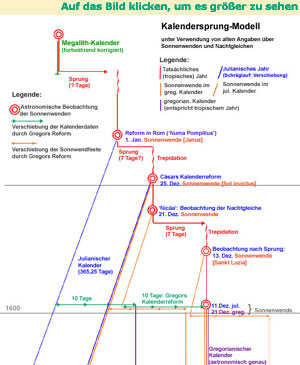 Andererseits wissen wir, daß im ausgehenden Mittelalter die astronomisch richtigen Daten der Nachtgleichen und Sonnenwenden allgemein bekannt waren; tatsächlich wurde die Sonnenwende am 13. Dezember gefeiert, der Festtag der Heiligen Luzia. Mit den heutigen Werten der Präzession - die mindestens seit dem 16. Jh. gelten - rückgerechnet, entspricht dieses Datum einem Zeitpunkt etwa 250 Jahre vor Gregors Reform; daher dürfen wir annehmen, daß die Fixierung des neuen Datums im Kalender - das nun nicht mehr dem kirchlichen entsprach - etwa um 1300 geschah.