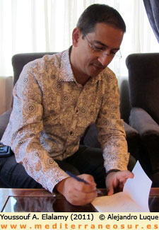 El escritor marroquí Youssouf Amine Elalamy reflexiona sobre el acto militante que es escribir en el idioma materno, y sobre el movimiento reivindicativo de la Primavera Árabe en Marruecos.El día soleado parece contagiar de buen humor a Youssouf Amine Elalamy (Larache, 1961), que llega puntual y sonriente a la cita en un hotel sevillano. Profesor de la Universidad Ibn Tufayl de Kenitra, secretario del Centro Marroquí del Pen Club Internacional, este joven escritor se ha dado a conocer, entre otros méritos, por haber sido el primero en incorporar el dáriya, el idioma árabe magrebí, a la ficción narrativa.